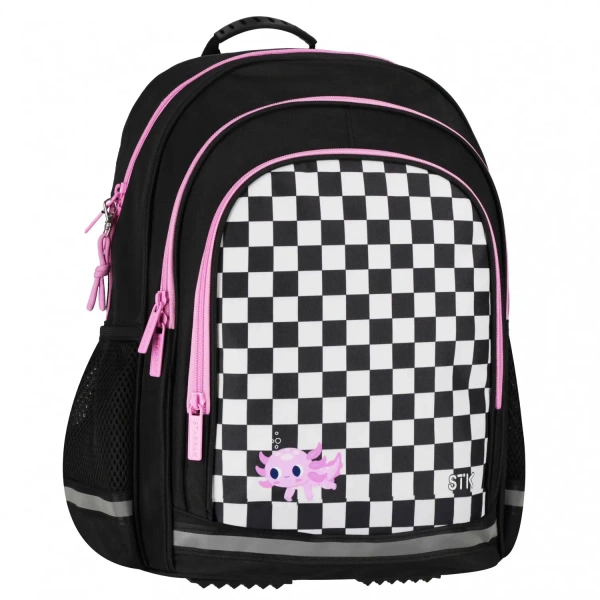 Plecak składa się z 1 dużej komory i 2 obszernych przednich kieszeni, 2 boczne wzmocnione kieszenie siatkowe na butelkę z napojem, wytrzymałe zamki błyskawiczne, plastikowe stopki na spodzie plecaka (ochrona przed wilgocią i brudem), ergonomiczne plecy i szelki, plecy z systemem wentylacji dla większego komfortu, grube, miękkie szelki chronią ramiona, regulowane szelki pozwalają dopasować plecak do wzrostu i budowy ciała, uchwyt wzmocniony gumową opaską pozwalające zawiesić plecak na wieszaku lub wygodnie nosić go w ręce, odblaskowe paski umieszczone na przedniej kieszeni, na obu bocznych kieszeniach i na szelkach zwiększające widoczność plecaka w nocy (bezpieczeństwo dziecka). Plecak szkolny składający się z dwóch komór zapinanych na zamek, co pozwoli na lepsze zorganizowanie wewnętrznej przestrzeni. Na zewnątrz znajduje się bardzo obszerna przednia, zapinana kieszeń, po bokach dwie kieszenie ze ściągaczem idealne na umieszczenie w nich bidonu z napojem. Plecy i szelki wyściełane gąbką zapewniają komfort użytkowania i równomierne rozłożenie obciążenia na plecach dziecka. Wykonany z trwałego materiału wykończonego elementami odblaskowymi dla większego bezpieczeństwa. Zapoznaj się również z innymi produktami STARPAK dedykowanymi młodzieży. Plecak w czarnym kolorze z czarno-białą szachownicą na froncie. Plecak jest wyrobem tekstylnym. Przeznaczony dla dzieci w wieku: 3+. Wymiary produktu (wys. x szer. x gł.) [cm]: 40x29x20, pojemność plecaka 23 l, waga produktu [kg]: 0,72 kg. Plecak pakowany w folię.