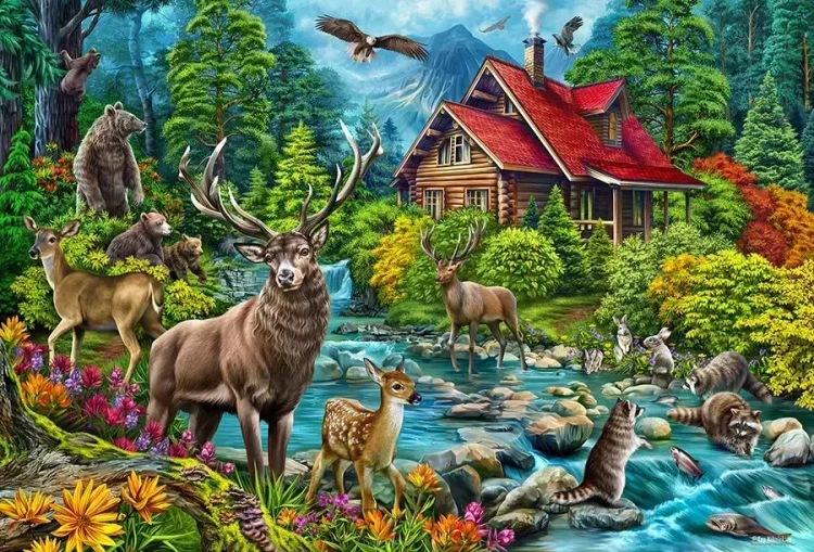 Puzzle Cobble Hill 2000 Standard 2000 elementów Chata z czerwonym dachem 49016 - Cobble Hill
