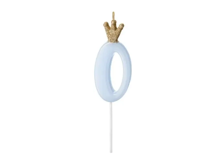 Świeczka urodzinowa 0 jasny niebieski 9,5cm - PartyDeco