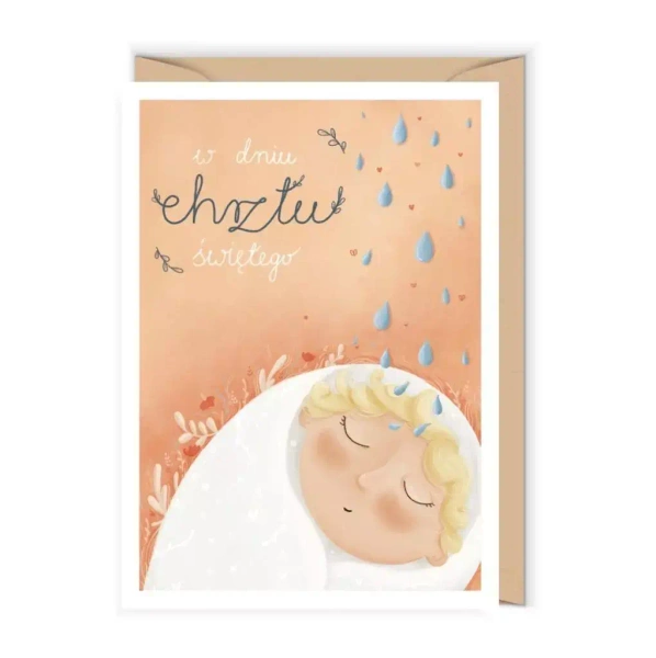 Otwierana kartka, pusta w środku, wykonana na papierze (z certyfikatem EFC) z wyraźnie widoczną fakturą. W zestawie ekologiczna koperta.