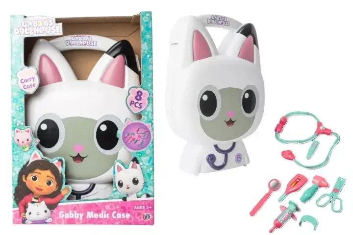 Zestaw medyczny Gabby to idealne narzędzie do zabawy w lekarza! Ta urocza walizeczka w kształcie kociaka kryje w sobie 8 niezbędnych akcesoriów, które zapewnią godziny kreatywnej zabawy.