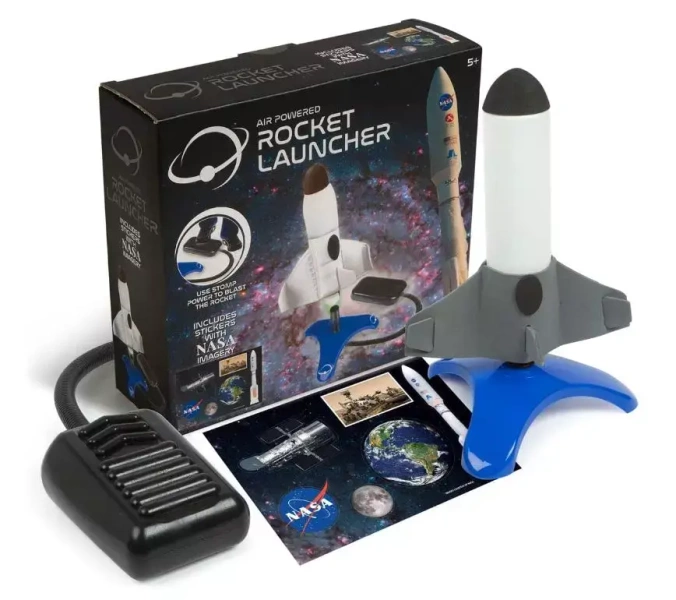 Poczuj się jak prawdziwy astronauta i razem z NASA wystrzel rakietę w kosmos! Wystarczy, że naciśniesz pedał, a Twój kosmiczny pojazd uniesie się w powietrze! Dodatkową atrakcję zapewnią dołączone naklejki związane z kosmosem i NASA. Już dziś wyrusz w międzygalaktyczną przygodę z tym niezwykłym zestawem!