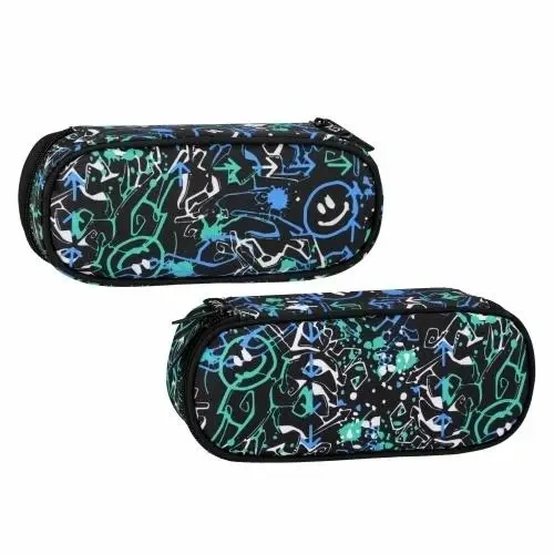 Odporny materiał, podszewka, która chroni przed zabrudzeniem i jest łatwa w czyszczeniu, mocny zamek błyskawiczny, bardzo pojemny, kształt saszetki. Piórnik School w kolorze czarnym z kolorowym graffiti w kształcie saszetki z dużym zamkiem błyskawicznym. Pomieści niezbędne artykuły piśmiennicze i nie zajmie dużo miejsca w plecaku( nawet mini) oraz worku. Zapoznaj się również z innymi produktami STARPAK z serii dedykowanej młodzieży! Produkt jest wyrobem tekstylnym. Przeznaczony dla dzieci w wieku: 3+. Wymiary produktu (wys. x szer. x gł.) [cm] 5x22x10, waga produktu [kg]: 0,19 kg. Pakowany w folię.