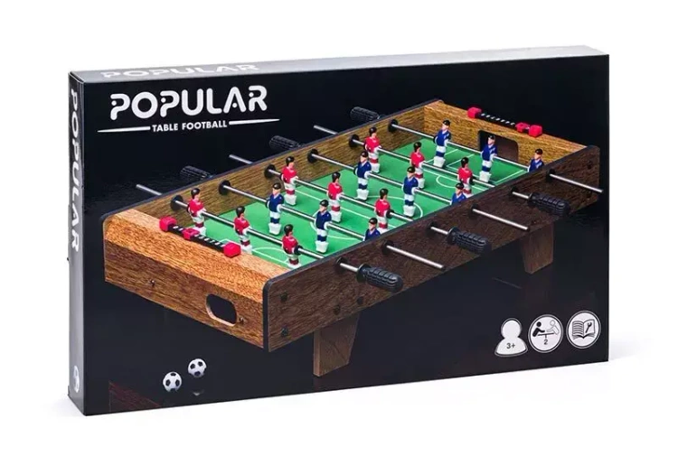Wykonany z wysokiej jakości materiału MDF, który zapewnia długą żywotność i odporność na zużycie. Zaokrąglone krawędzie, solidna konstrukcja i staranne wykonanie gwarantują bezpieczną grę. Przeznaczony dla całej rodziny. Zapewni świetną zabawę zarówno dzieciom, jak i dorosłym w każdym wieku, podczas rodzinnych spotkań oraz imprez z przyjaciółmi. Można grać w dwie lub cztery osoby. Zawiera 2 piłeczki, ręczne liczniki i 6 rzędów zawodników. | Wiek: 3+ | Wymiary produktu: 51 x 45 x 12,5 cm |