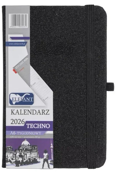 Kalendarz 2026 A6 tygodniowy Techno czarny - praca zbiorowa