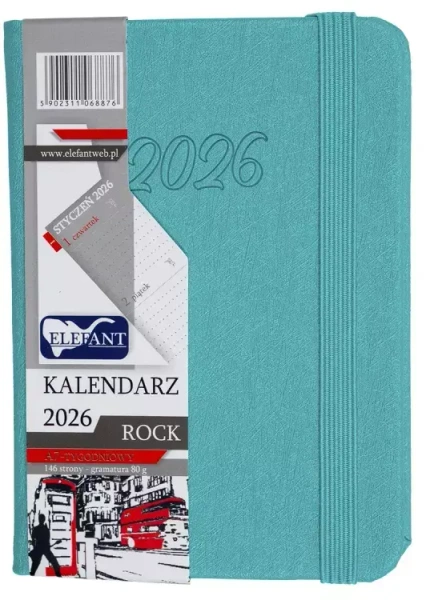 Kalendarz 2026 A7 tyg Rock turkusowy - praca zbiorowa