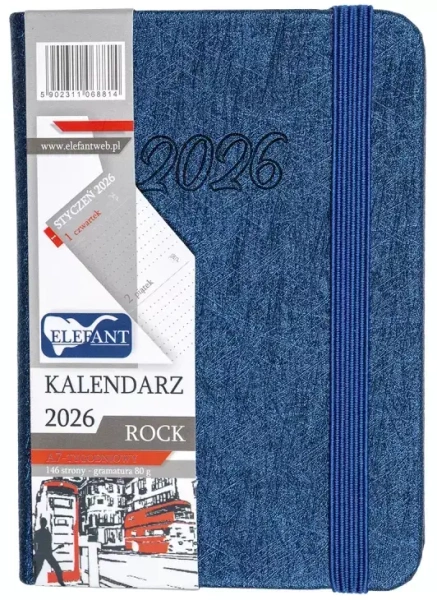 Kalendarz 2026 A7 tyg Rock szafirowy - praca zbiorowa