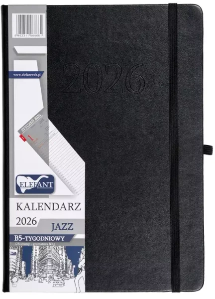 Kalendarz 2026 B5 tygodniowy Jazz czarny - praca zbiorowa