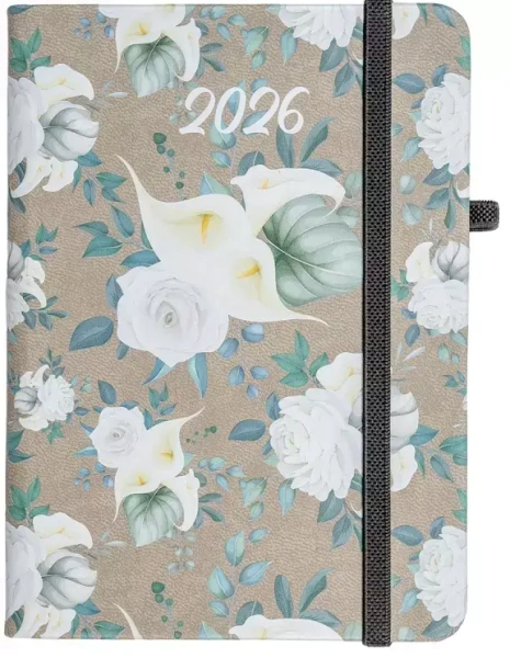 Kalendarz 2026 A6 tyg. Flamenco białe kwiaty - praca zbiorowa