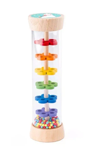 Przechylając wałek, tęczowe koraliki spadają przez kaskadę przeszkód, grzechocząc i tworząc fascynujący widok dla dziecka. | Wiek: 1+ | Wymiary: średnica 5,5 x 19 cm |