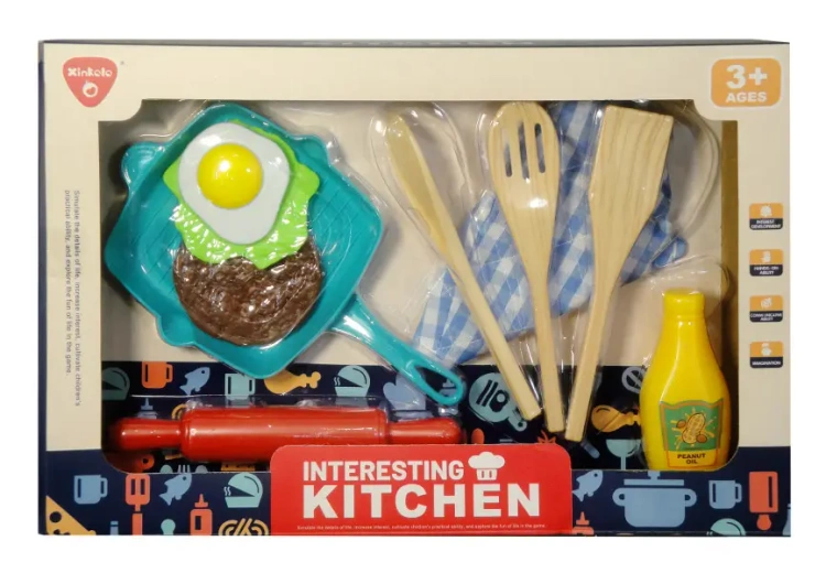 Zaproś swoje dziecko do kulinarnej przygody z kolorowym zestawem kuchennym! Ten uroczy komplet to doskonała zabawka edukacyjna, która rozwija wyobraźnię, kreatywność i zdolności manualne. W skład zestawu wchodzi m.in.: patelnia z artykułami spożywczymi, wałek, łapka kuchenna i utensylia kuchenne. Produkt dla dzieci od 3 lat. Zabawka zapakowana w kartonowe opakowanie. Podane wymiary są wymiarami opakowania.