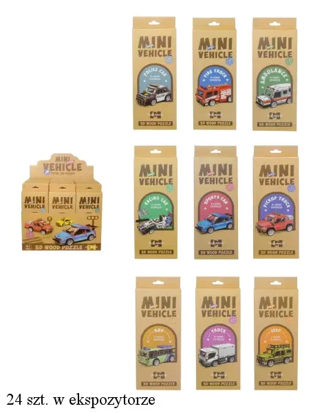 Drewniane puzzle dla dzieci po złożeniu, których otrzymamy pojazd czy to sportowy czy to ratunkowy. Każdy model posiada inną ilość puzzli. Do zebrania 10 różnych modeli. Zbierz całą kolekcję! Puzzle przeznaczone dla dzieci od 6 lat. Produkt występuje w kilku wersjach, wybierany losowo. Cena dotyczy jednej sztuki. Produkt zapakowany w kartonowe opakowanie. Podane wymiary są wymiarami opakowania.