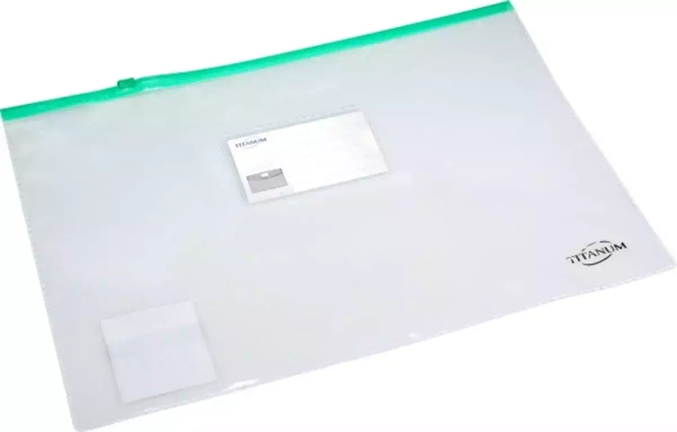teczka na suwak Zip Bag format A4 wykonana z folii polipropylenowej wykończona kolorowym znacznikiem zamykana na suwak na długim boku posiada kieszeń na wizytówkę lub opis