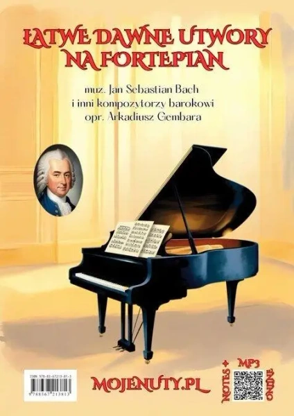 Łatwe dawne utwory na fortepian to zbiór starannie wybranych kompozycji, stworzonych z myślą o początkujących po średnio-zaawansowanych pianistach pragnących zgłębić tajniki muzyki barokowej. Publikacja ta stanowi wyjątkową okazję do zanurzenia się w bogactwo melodyczne i harmoniczne tej epoki. Dzięki przemyślanemu doborowi utworów, łączących aspekt edukacyjny z artystyczną wrażliwością, pianista ma możliwość nie tylko doskonalenia swoich umiejętności, ale także odkrywania piękna muzyki barokowej. Każdy utwór jest opracowany pod względem artykulacyjnym oraz aplikatury palcowej. Zawiera również kod QR, który po zeskanowaniu przekierowuje do portalu YouTube, gdzie można odsłuchać wykonanie danego dzieła. Nagrań dokonał autor publikacji, Arkadiusz Gembara. Warto zaznaczyć, że ostateczna interpretacja utworów pozostaje w gestii wykonawcy oraz nauczyciela, który może mieć własną wizję interpretacyjną. Niestety, nie posiadamy nagrań interpretacji kompozytorów tej epoki, a wszystkie dostępne wersje są wynikiem interpretacji zaproponowanych przez wydawnictwa muzyczne oraz ekspertów w dziedzinie muzyki barokowej. Kompozytorzy epoki baroku, w tym Jan Sebastian Bach, rzadko wskazywali na konkretne oznaczenia dotyczące artykulacji, dynamiki i tempa. Te pojęcia, jak wcześniej wspomniałem, zostały przypisane przez wydawnictwa nutowe oraz autorów opracowań na podstawie ich wiedzy oraz doświadczenia. Zapraszamy do muzycznej podróży po świecie Bacha oraz pokrewnych mu kompozytorów, gdzie prostota spotyka się z głębią, tworząc niezapomniane doświadczenie dla każdego miłośnika muzyki.
