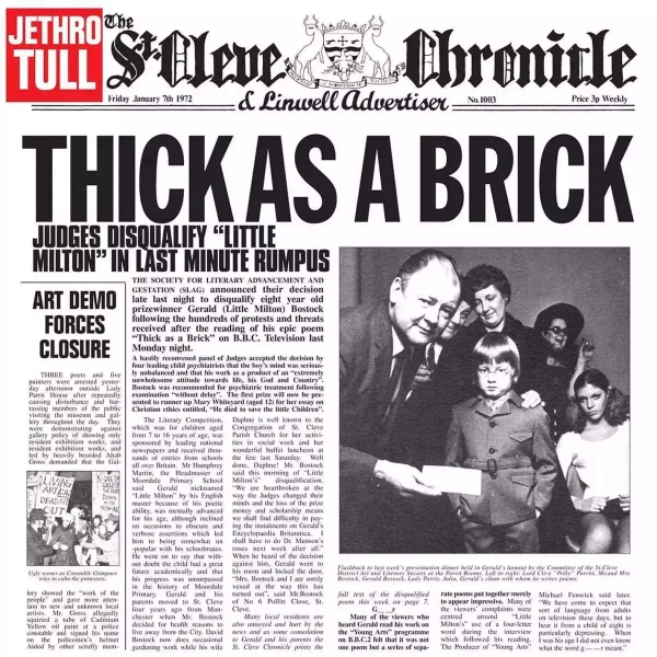 Wznowienie absolutnego arcydzieła rocka progresywnego, piątego albumu brytyjskiej grupy Jethro Tull. Materiał ukazał się pierwotnie w 1972 roku. Był to pierwszy numer jeden formacji Iana Andersona na liście "Billboardu" (czwarty z kolei album, który w Ameryce pokrył się co najmniej złotem). W Wielkiej Brytanii materiał dotarł do pozycji drugiej. Płyta, będąca konceptem, zawierała tylko jeden utwór podzielony na dwie części. Kompozycja dziś jest klasykiem rocka progresywnego. Wznowienie ukazuje się z repliką oryginalnej okładki, przypominającej gazetę.
