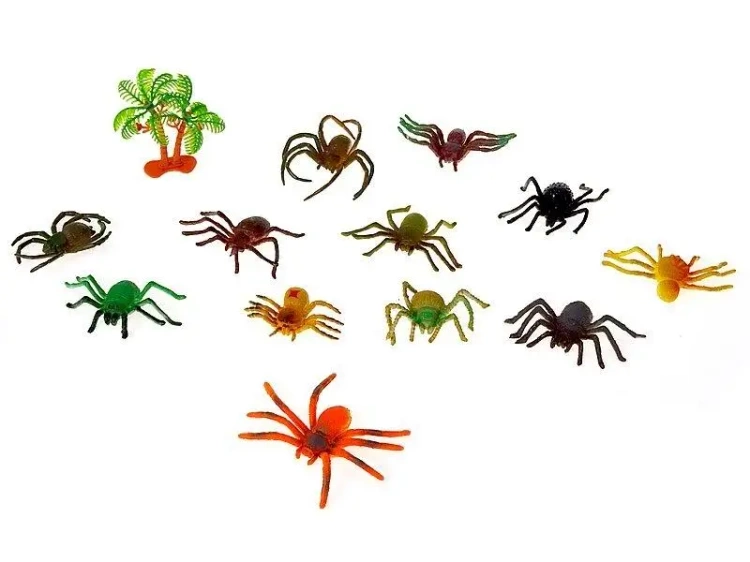 zestaw 12 pająków śred.ok.5cm; 19x15x2cm, PVC