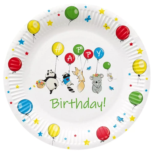 Talerzyki papierowe 23 cm, balony (8 sztuk)