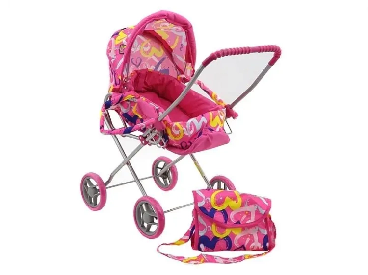 Wózek dla lalek, głęboki, z koszem, składany daszek, wyjmowane nosidełko, torebka, 2w1 (z funkcją spacerówki), PVC
