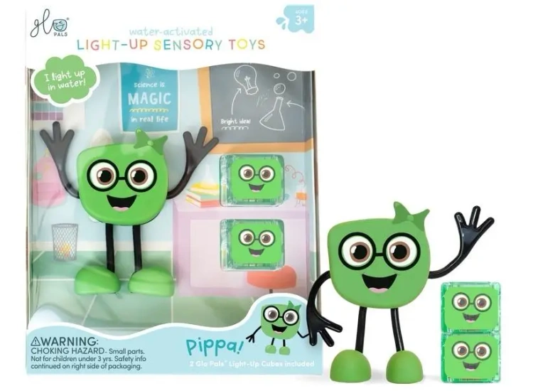 Glo Pals, Zestaw postać Pippa oraz 2 kostki sensoryczne świecące w wodzie, w kolorze zielonym.