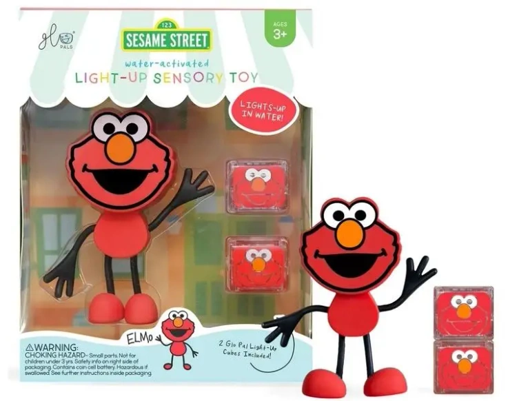 Glo Pals, Zestaw postać Elmo oraz 2 kostki sensoryczne świecące w wodzie. Wyjątkowa seria, która stworzy prawdziwie bajeczną kąpiel świecąc w kolorze czerwonym!