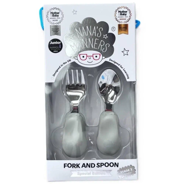 Zestaw sztućców widele i łyżka szary - Nana's Manners