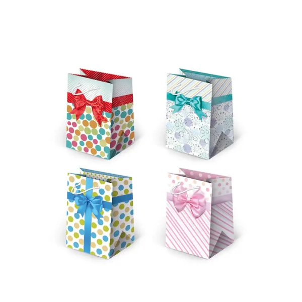 Małe klasyczne laminowane torebki Wymiary: 10 x 16 x 6 cm (szer. x wys. x dno)