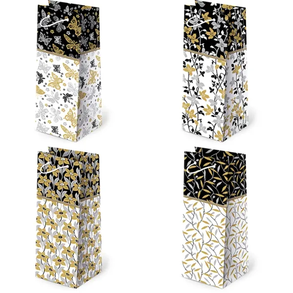 Klasyczne laminowane torebki na butelkę Wymiary: 12 x 36,9 x 11 cm (szer. x wys. x dno)