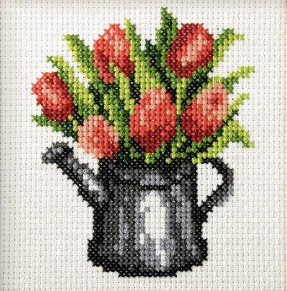 Haft krzyżykowy - Tulipany w konewce - Anex-bis