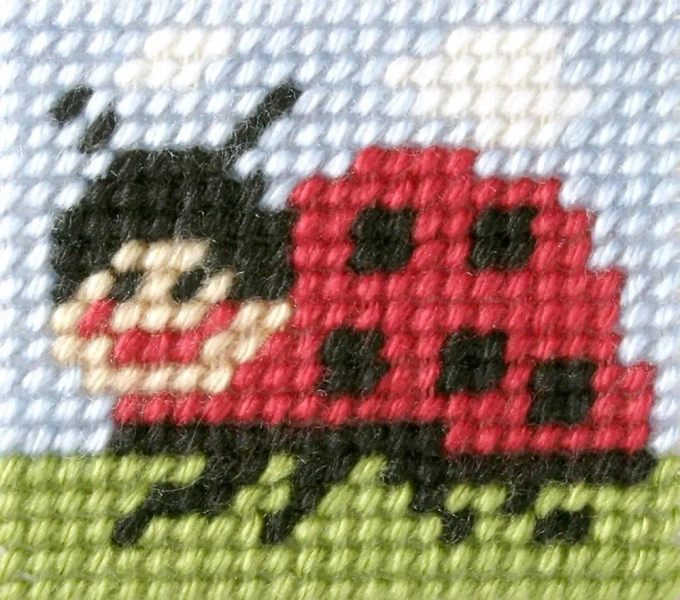 Zestaw do haftu z włóczką idealny dla dzieci i początkujących! Tkanina z nadrukiem, igła, włóczka i instrukcja w zestawie Wymiar haftu: 11 x 13 cm.