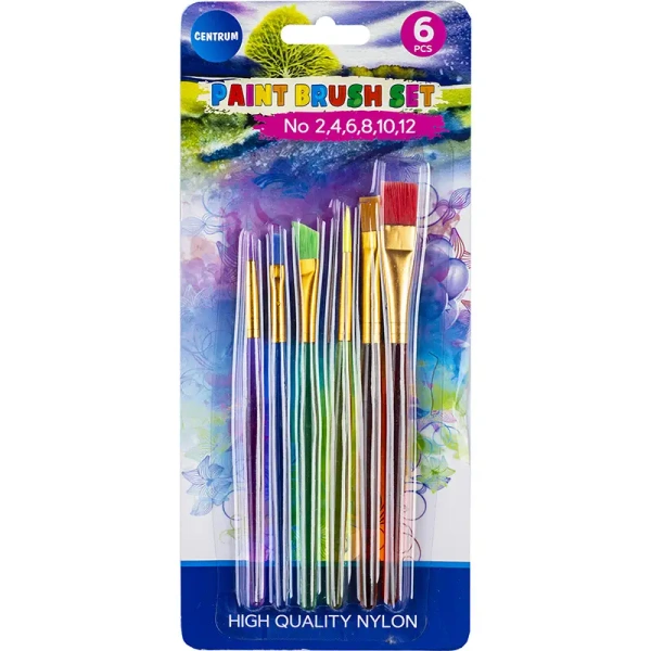 Zestaw artystycznych pędzli plastikowych, 6 szt. Nr 2,4,6,8,10,12. Opakowanie blister