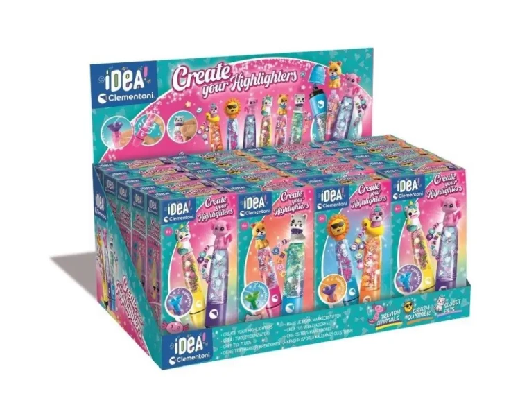 Oryginalny zestaw kreatywny służący do złożenia zakreślaczy i ich spersonalizowania przy pomocy różnych ozdób. Praktyczny, wieloelementowy zestaw składający się z: markerów, tuszy w różnych kolorach, figurek i wszystkich narzędzi potrzebnych do ich wykonania. Koncepcja będąca czymś znacznie więcej niż zwykłym zadaniem ozdobienia. Teraz można tworzyć, dając upust wyobraźni. Opracowano i zaprojektowano we Włoszech.