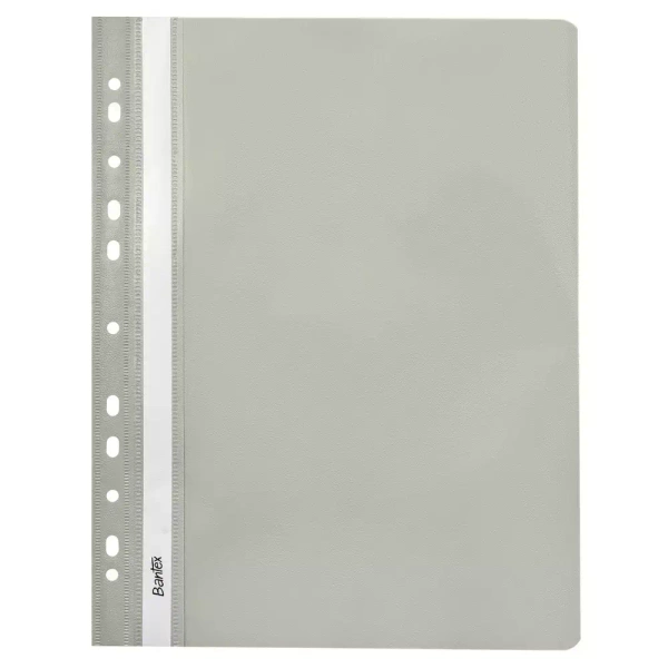 Klasyczny skoroszyt w formacie A4, wykonany z polipropylenowej folii. Przednia okładka o grubości 120 mic. jest przezroczysta dla doskonałej widoczności dokumentów. Tylna okładka o grubości 170 mic. została wykonana z nieprzezroczystej, zielonej folii. Metalowe wąsy bezpiecznie mocują dokumenty w skoroszycie. Na grzbiecie znajduje się wymienny pasek do opisu zawartości.