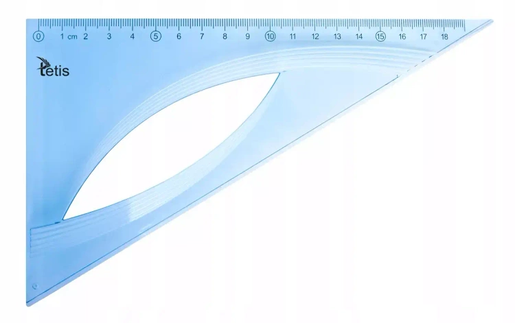 Ekierka prostokątna wykonana z przezroczystego tworzywa z wyraźną skalą.