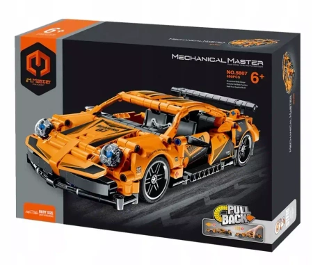 Klocki przedstawiają wyścigowe auto pomarańczowe z systemem Pull and Back. Dzięki bogatym możliwościom zabawy ten sportowy samochód oferuje niekończącą się zabawę.