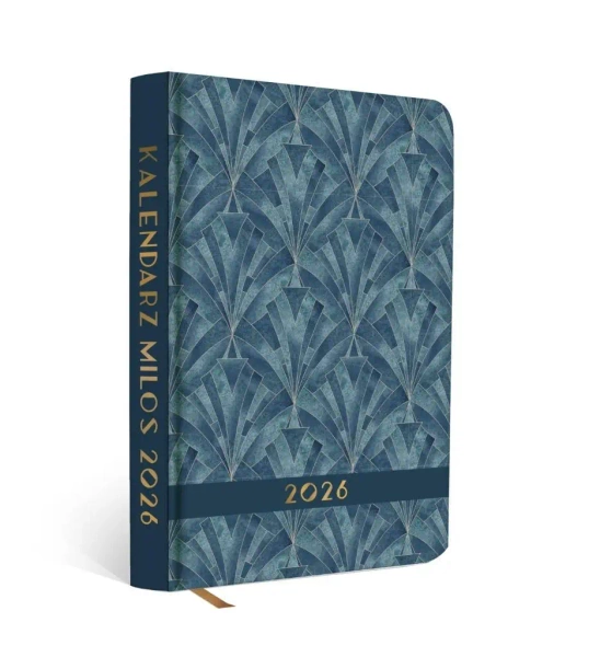 Kalendarz książkowy w twardej skóropodobnej oprawie ze wstążką. Układ kalendarium dzienny. 336 stron. Wymiary 143x211 mm