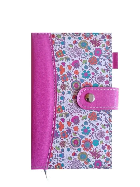 Kalendarz kieszonkowy w twardej skóropodobnej oprawie z zatrzaskiem. Układ kalendarium 4-dniowy.200 stron. Wymiary 92x150 mm