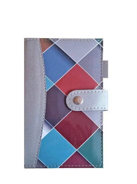 Kalendarz kieszonkowy w twardej skóropodobnej oprawie z zatrzaskiem. Układ kalendarium 5-dniowy.200 stron. Wymiary 92x150 mm