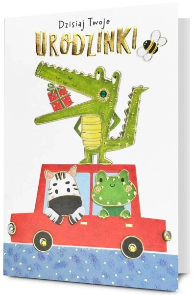 Kartka jest bogato i różnorodnie zdobiona (zależnie od wzoru: metaliczna folia, lakier perłowy, brokat, przyklejone elementy 3D - wypukłe wstawki papierowe, elementy biżuteryjne, tłoczenia).