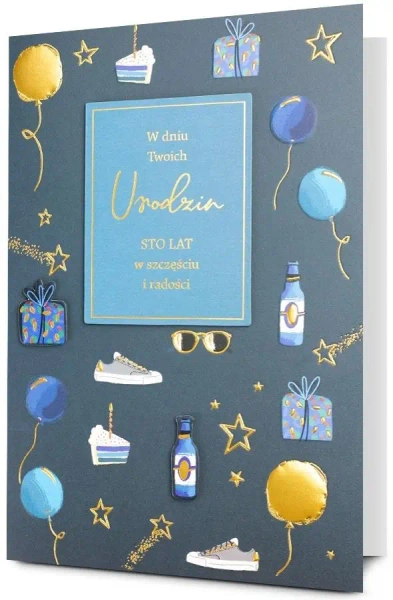 Kartka zawiera życzenia i kolorowy środek. W zestawie znajduje się koperta, kolorystycznie uzupełniająca się z kartką.