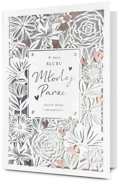 Kartka jest bogato i różnorodnie zdobiona (zależnie od wzoru: metaliczna folia, lakier perłowy,
