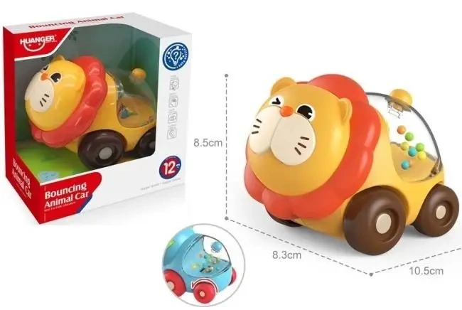 Przedstawiamy "Bouncing Animal Car" marki HUANGER - wesoły samochodzik w kształcie uroczego lwa, który zachwyci każde dziecko! Ta interaktywna zabawka została zaprojektowana z myślą o najmłodszych, rozwijając ich zdolności motoryczne i zmysły. W przezroczystej kopule lwa znajdują się kolorowe kuleczki, które wesoło podskakują podczas jazdy, przyciągając uwagę malucha i stymulując wzrok. Samochodzik wykonany jest z wysokiej jakości, bezpiecznych dla dzieci materiałów, co gwarantuje trwałość i odporność na intensywną zabawę. Jego kompaktowe wymiary (ok. 10.5 cm długości, 8.3 cm szerokości i 8.5 cm wysokości) sprawiają, że jest idealny do małych rączek. "Bouncing Animal Car" to doskonały prezent, który zapewni godziny radosnej i rozwijającej zabawy.