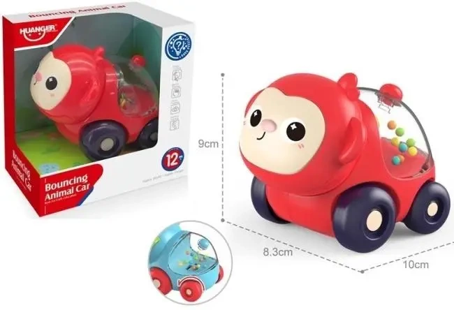 Huanger Bouncing Animal Car - Zabawka Interaktywna Małpka z Grzechotką. Szukasz idealnej zabawki dla swojego malucha, która pobudzi jego zmysły i zachęci do ruchu? Przedstawiamy Bouncing Animal Car od Huanger - uroczą małpkę na kółkach, stworzoną z myślą o dzieciach od 12 miesiąca życia! Ta innowacyjna zabawka łączy w sobie cechy autka i grzechotki. W przezroczystej kopule, umieszczonej z tyłu pojazdu, znajdują się kolorowe kuleczki, które wesoło grzechoczą podczas jazdy, przyciągając uwagę dziecka i stymulując jego zmysł słuchu. Sympatyczna buzia małpki z uśmiechem na pewno spodoba się każdemu maluchowi. Bouncing Animal Car Małpka to nie tylko świetna zabawa, ale także wsparcie dla rozwoju dziecka. Toczenie zabawki zachęca do raczkowania, a następnie do stawiania pierwszych kroków, rozwijając motorykę dużą i koordynację ruchową. Zabawka wykonana jest z bezpiecznych, nietoksycznych materiałów, gwarantując trwałość i bezpieczeństwo podczas intensywnej zabawy. Główne cechy produktu: Wiek: Od 12 miesięcy+ Wesoły design: Urocza małpka z uśmiechniętą buzią. Interaktywna grzechotka: Kolorowe kuleczki w przezroczystej kopule grzechoczą podczas ruchu. Rozwój motoryczny: Zachęca do raczkowania i stawiania pierwszych kroków. Bezpieczne materiały: Wykonana z wysokiej jakości, nietoksycznych tworzyw. Wymiary: Ok. 9 cm (wysokość), 8.3 cm (szerokość), 10 cm (długość). Idealna na prezent: Doskonały pomysł na upominek dla roczniaka. Zapewnij swojemu dziecku godziny radosnej i rozwijającej zabawy z Bouncing Animal Car Małpka Huanger! Sprawdź również inne zwierzęce wzory dostępne w naszej ofercie.