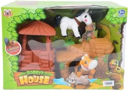 Zestaw do zabawy "Forest House" - Wyrusz na Leśną Przygodę! Przenieś się w świat fantazji z zestawem "Forest House", stworzonym dla małych miłośników zwierząt i przygód! Ten uroczy komplet zawiera wszystko, czego potrzeba do stworzenia własnej leśnej opowieści: Uroczy biały konik: Z czarną grzywą i ogonem, gotowy do wspólnych wypraw po leśnych ścieżkach. Przyjazna krówka: Dodatkowy towarzysz do zabawy, wzbogacający leśną farmę. Magiczny domek: Idealny jako kryjówka dla leśnych stworzeń lub miejsce odpoczynku dla zwierząt. Jaskinia: Dodaje autentyczności leśnej scenerii i inspiruje do tworzenia nowych scenariuszy zabawy. Zestaw "Forest House" rozwija wyobraźnię, kreatywność i zdolności manualne dziecka. Dzięki niemu maluchy mogą odgrywać role, uczyć się empatii i tworzyć niezliczone historie o życiu w lesie i na leśnej farmie. Całość zapakowana jest w estetyczne pudełko z grafiką leśną, z przezroczystym okienkiem, co sprawia, że idealnie nadaje się na prezent. Cechy produktu: Materiał: Trwałe i bezpieczne tworzywo sztuczne Wiek: Od 3 lat Podaruj swojemu dziecku świat leśnych przygód z zestawem "Forest House"!
