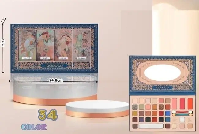 Paleta Cieni do Powiek IGOODCO - 34 Kolory Natchnione Boginiami Elegancji Zanurz się w świecie barw z wyjątkową paletą cieni do powiek IGOODCO, oferującą aż 34 starannie wyselekcjonowane odcienie. Od matowych baz, przez satynowe akcenty, aż po błyszczące pigmenty - ta paleta pozwoli Ci stworzyć niezliczone kombinacje makijaży. Opakowanie palety to prawdziwe dzieło sztuki, inspirowane klasycznymi wzorami secesyjnymi. Cztery ilustracje bogiń - symbolizujących piękno, modę, elegancję i bogactwo - zdobią wieczko, czyniąc tę paletę nie tylko narzędziem do makijażu, ale i ozdobą Twojej toaletki. Solidna konstrukcja o wymiarach ok. 24.8 cm długości i 14 cm wysokości (po zamknięciu) zapewnia trwałość i komfort użytkowania. Niezależnie od tego, czy jesteś początkującą miłośniczką makijażu, czy doświadczoną wizażystką, paleta IGOODCO 34 Kolory to doskonały wybór dla każdego, kto ceni sobie jakość, wszechstronność i unikalny design. Idealna na prezent lub jako wzbogacenie własnej kolekcji kosmetyków.