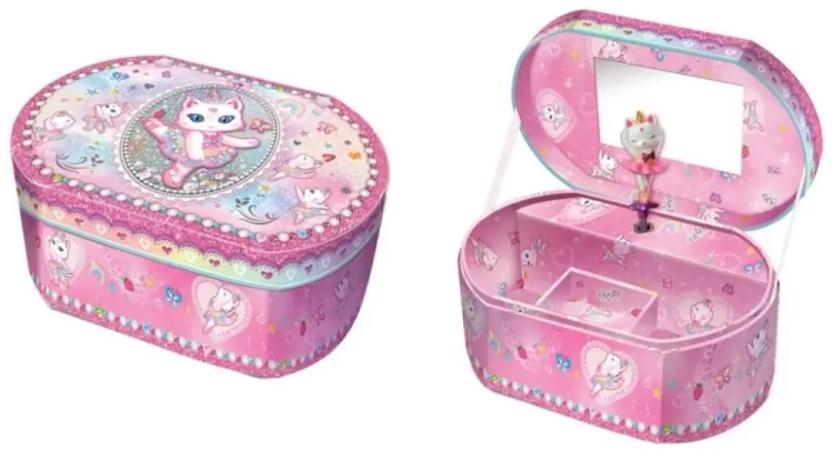 Pozytywka gra klasyczną melodię. Po otwarciu figurka będzie się kręcić. Gdy melodia przestanie grać pozytywkę wystarczy nakręcić. Działa dzięki specjalnemu mechanizmowi, nie wymaga baterii. Zawiera lusterko oraz miejsce na schowanie drobiazgów. Wiek: 6+
