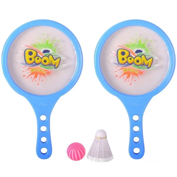 Zestaw do badmintona i tenisa Boom Sport - świetna zabawa na świeżym powietrzu! Zachęć swoje dziecko do aktywnej zabawy na świeżym powietrzu z tym fantastycznym zestawem Boom Sport! Idealny dla małych miłośników sportu, ten kolorowy zestaw zapewni wiele godzin wesołej rozrywki. W skład zestawu wchodzą: Dwie lekkie rakietki z dużą powierzchnią uderzenia, idealne dla małych rączek. Rakietki ozdobione są dynamicznym napisem "Boom Sport" i efektownymi grafikami. Jedna plastikowa piłeczka w różowo-białe paski, bezpieczna i łatwa do trafienia. Jedna lotka z plastikowym koszyczkiem i piankową główką, doskonała do pierwszych prób gry w badmintona. Ten uniwersalny zestaw pozwala na grę w badmintona oraz uproszczoną wersję tenisa, rozwijając koordynację ruchową, zręczność i kondycję fizyczną dziecka. Lekka konstrukcja rakietek sprawia, że są łatwe w obsłudze nawet dla najmłodszych graczy. Cechy produktu: Lekkie i bezpieczne materiały Ergonomiczne uchwyty rakietek Kolorowy i atrakcyjny design Uniwersalność - możliwość gry w badmintona i tenisa Idealny do zabawy w ogrodzie, na plaży czy w parku Wielkość : 32cm Spraw radość swojemu dziecku i podaruj mu ten wspaniały zestaw Boom Sport, który zapewni mnóstwo aktywnej zabawy i uśmiechu!