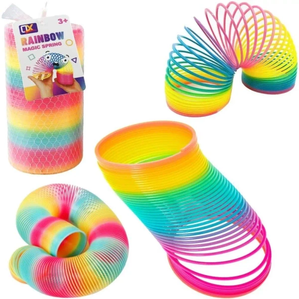 Tęczowa Sprężyna - Klasyczna zabawka, która nigdy nie wychodzi z mody! Wróć do czasów dzieciństwa i podaruj swojemu dziecku tę kultową zabawkę, która od lat bawi i zaskakuje kolejne pokolenia! Tęczowa sprężyna to nie tylko świetna zabawa, ale również ćwiczenie koordynacji ruchowej i rozwój wyobraźni. Cechy produktu: Klasyczny design: Kolorowa sprężyna, która skacze, chodzi i tańczy na schodach, w dłoniach i w wielu innych miejscach. Wielofunkcyjność: Zabawka, która nigdy się nie nudzi! Można ją turlać, podrzucać, rozciągać, a nawet tworzyć z niej różne kształty. Ćwiczenie koordynacji: Zabawa sprężyną to doskonały sposób na rozwijanie zdolności manualnych i koordynacji wzrokowo-ruchowej u dzieci. Rozwój wyobraźni: Sprężyna pobudza kreatywność i zachęca do wymyślania coraz to nowych sposobów zabawy. Idealny prezent: To uniwersalny prezent dla dzieci w każdym wieku, który sprawdzi się na urodzinach, imieninach lub jako drobny upominek. Specyfikacja: Materiał: Tworzywo sztuczne Wymiary: 15x9 Wiek: 3+ W zestawie: Tęczowa sprężyna Dodatkowe informacje: Sprężyna jest lekka i łatwa do przenoszenia, dzięki czemu można ją zabrać ze sobą wszędzie. Zabawka jest bezpieczna dla dzieci. Zapraszamy do zakupu!