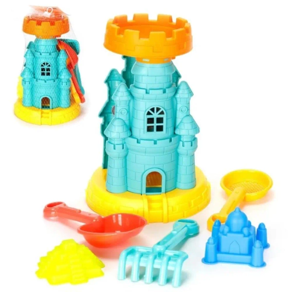 Zestaw do Piasku "Magiczny Zamek Marzeń" 6 elementów - Kreatywna Zabawa na Plażę i do Piaskownicy! Odkryj magiczny świat budowania z naszym uroczym zestawem do piasku "Zamek Marzeń"! Ten kolorowy i pełen fantazji komplet zapewni Twojemu dziecku długie godziny kreatywnej zabawy na plaży, w piaskownicy, a nawet w ogrodzie. Centralnym elementem zestawu jest imponujący, wielopoziomowy zamek w odcieniach turkusu i żółci z pomarańczowymi akcentami. Zamek posiada charakterystyczne okienka, drzwi i blanki na szczycie, które pobudzą wyobraźnię każdego małego architekta. W skład zestawu wchodzą, oprócz zamku: Łopatka w intensywnym czerwonym kolorze, idealna do nabierania i przesypywania piasku. Grabki w przyjemnym turkusowym odcieniu, niezbędne do wyrównywania terenu i tworzenia wzorów. Sitko w słonecznym żółtym kolorze, które pomoże w przesiewaniu piasku i odkrywaniu ukrytych skarbów. Dodatkowa foremka w kształcie mniejszego zamku w błękitnym kolorze, pozwalająca na tworzenie wielu fantastycznych budowli. Foremka w kształcie piramidki w jaskrawym żółtym kolorze, urozmaicająca budowane konstrukcje. Dlaczego warto wybrać nasz zestaw "Magiczny Zamek Marzeń"? Pobudza kreatywność i wyobraźnię: Dziecko może tworzyć własne zamki, fortece i inne fantastyczne budowle. Rozwija zdolności manualne: Zabawa w piasku doskonale ćwiczy motorykę małą i koordynację wzrokowo-ruchową. Kolorowy i atrakcyjny design: Żywe kolory i ciekawe kształty zachęcają do zabawy. Wykonany z bezpiecznych i trwałych materiałów: Gwarantuje długotrwałą zabawę. Idealny na prezent: Sprawi radość każdemu małemu budowniczemu. Przenośny: Cały zestaw można łatwo spakować i zabrać ze sobą na wakacje czy do parku. Wielkość : 26x18x18 Zapewnij swojemu dziecku niezapomniane chwile pełne kreatywnej zabawy z naszym zestawem do piasku "Magiczny Zamek Marzeń"! Zamów już dziś i pozwól mu zbudować własne królestwo!