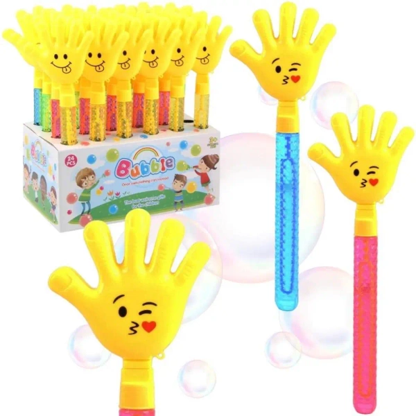 Bańki Mydlane Łapki Spraw, aby zabawa z bańkami mydlanymi stała się jeszcze bardziej radosna dzięki naszym wesołym bańkom łapką! Te kolorowe i łatwe w użyciu zabawki wyczarują mnóstwo pięknych baniek, które zachwycą każde dziecko. Idealne na przyjęcia, pikniki i letnie zabawy na świeżym powietrzu! Cechy produktu: Zabawny design: pojemniczek zakończony uśmiechniętą dłonią z uroczymi detalami przyciąga wzrok i zachęca do zabawy. Idealne dla małych rączek: Lekkie i łatwe do trzymania nawet dla najmłodszych dzieci. W zestawie płyn do baniek: Każda sztuka jest wyposażona w pojemniczek z płynem do baniek, dzięki czemu zabawa może rozpocząć się od razu. Różne kolory płynu: Zestaw zawiera pojemniczki z płynem w różnych atrakcyjnych kolorach (niebieski, różowy, zielony, żółty), co dodaje urozmaicenia zabawie. Bezpieczne dla dzieci: Wykonane z bezpiecznych i nietoksycznych materiałów. Wielkość: 30 cm Idealne dla: Dzieci w wieku 3 lat i starszych Zabaw na świeżym powietrzu Urozmaicenia przyjęć urodzinowych i innych uroczystości Drobnych upominków i nagród Z naszymi bańkami mydlanymi każda chwila stanie się pełna radości i kolorowych, unoszących się w powietrzu baniek!