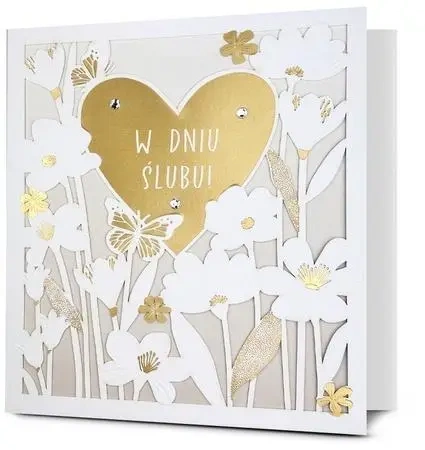 Kartka jest bogato i różnorodnie zdobiona (zależnie od wzoru: metaliczna folia, lakier perłowy,